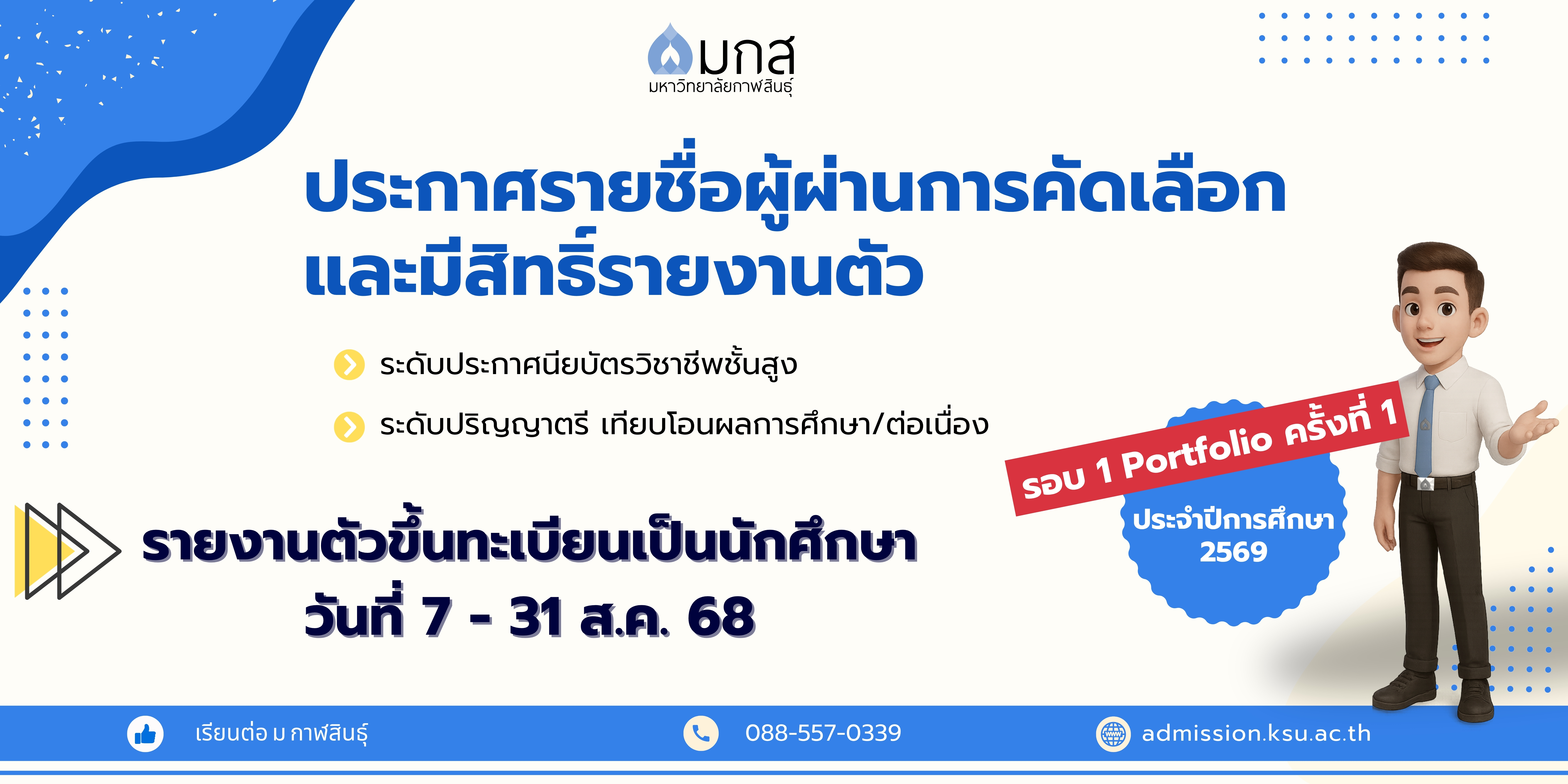 รายงานตัวขึ้นทะเบียนเป็นนักศึกษา ตั้งแต่วันที่ 7 - 31 สิงหาคม 2568 ทางออนไลน์ ได้ที่ รายงานตัวขึ้นทะเบียนเป็นนักศึกษา คลิกที่นี่