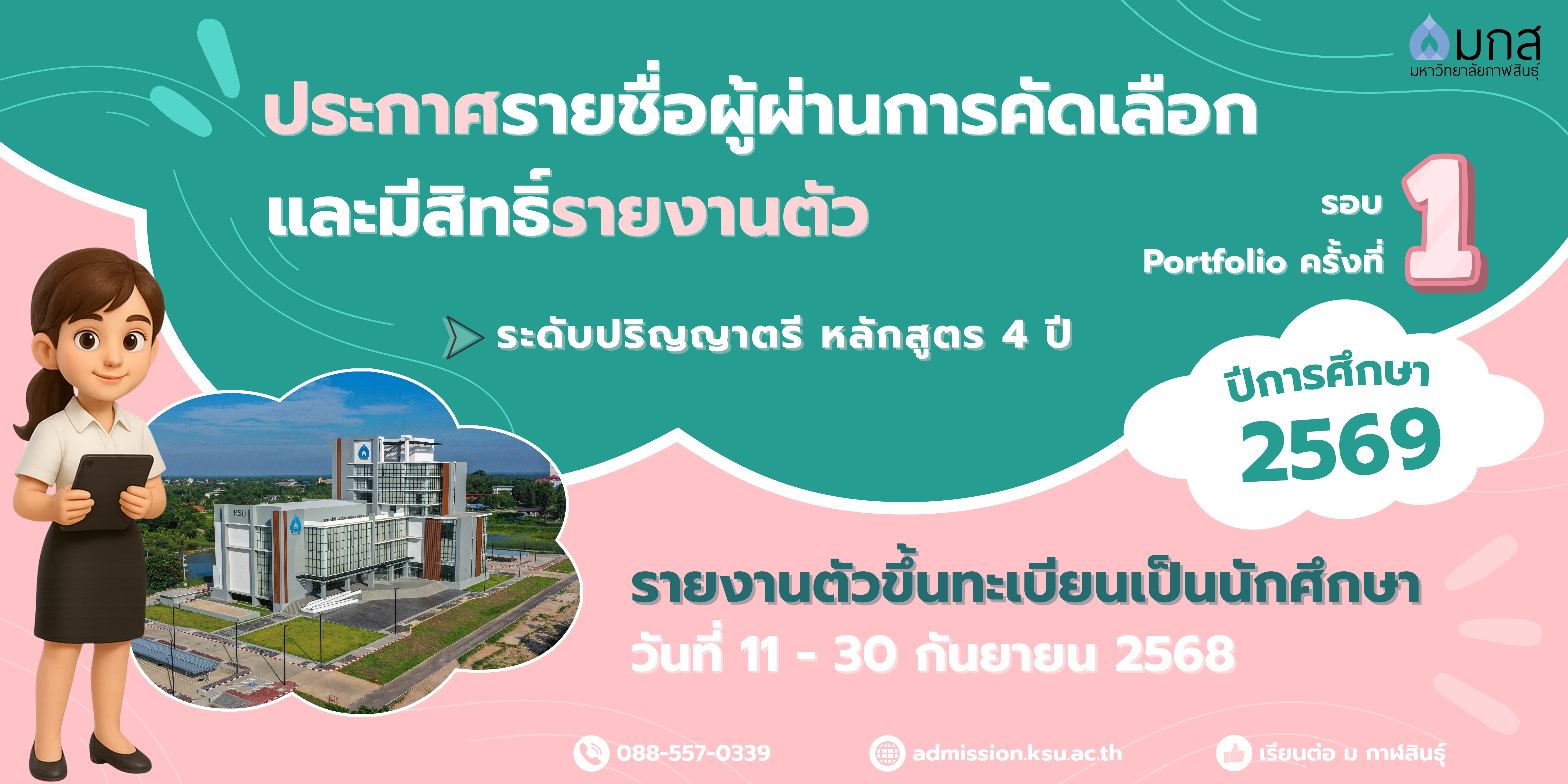 รายงานตัวขึ้นทะเบียนเป็นนักศึกษา ตั้งแต่วันที่ 11 - 30 กันยายน 2568 ทางออนไลน์ ได้ที่ รายงานตัวขึ้นทะเบียนเป็นนักศึกษา คลิกที่นี่