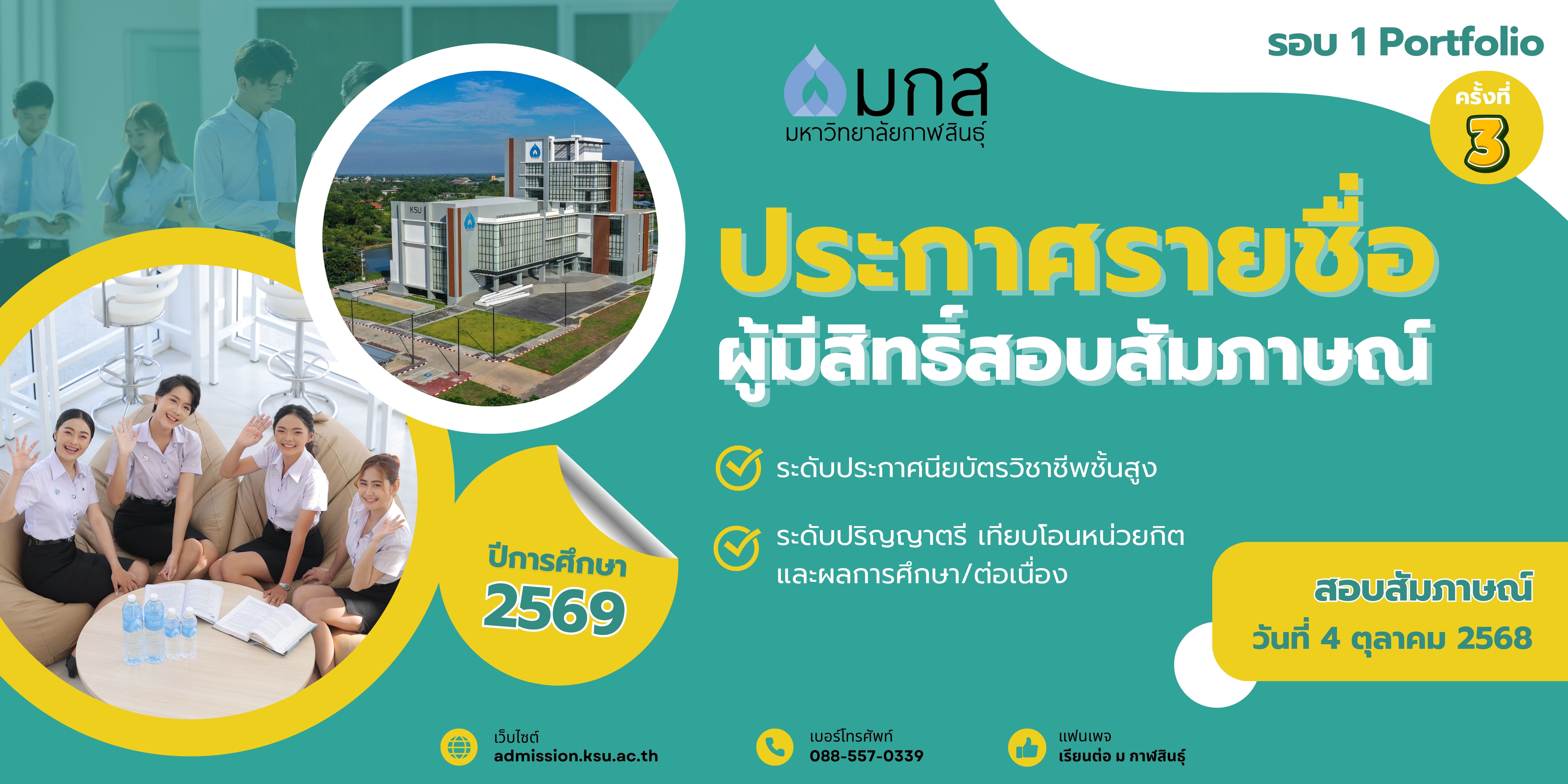 3. ประกาศรายชื่อผู้ผ่านการสัมภาษณ์ ในวันที่ 8 ตุลาคม 2568 ทางเว็บไซต์ http://admission.ksu.ac.th