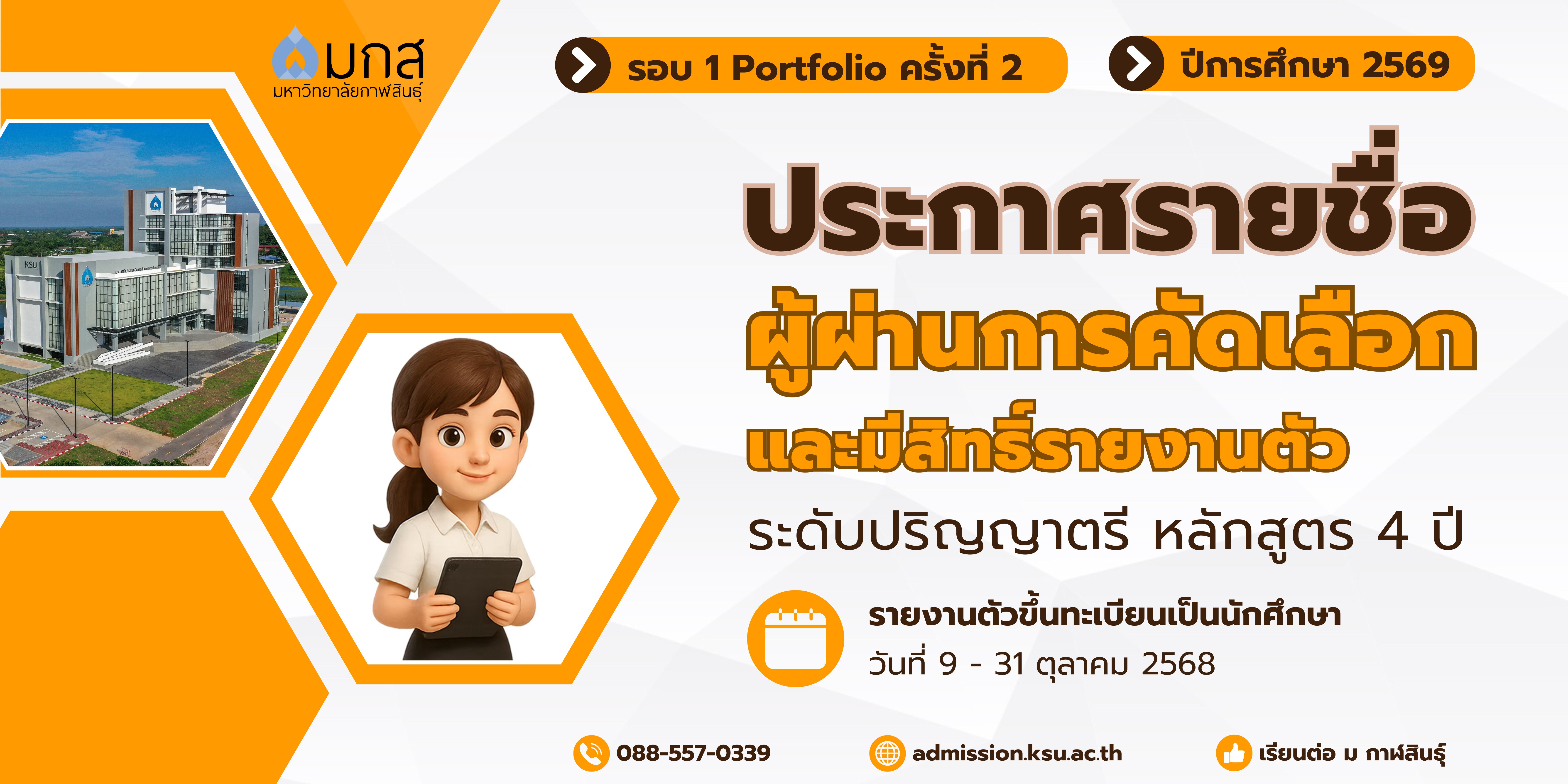 รายงานตัวขึ้นทะเบียนเป็นนักศึกษา ตั้งแต่วันที่ 9 - 31 ตุลาคม 2568 ทางออนไลน์ ได้ที่ รายงานตัวขึ้นทะเบียนเป็นนักศึกษา คลิกที่นี่