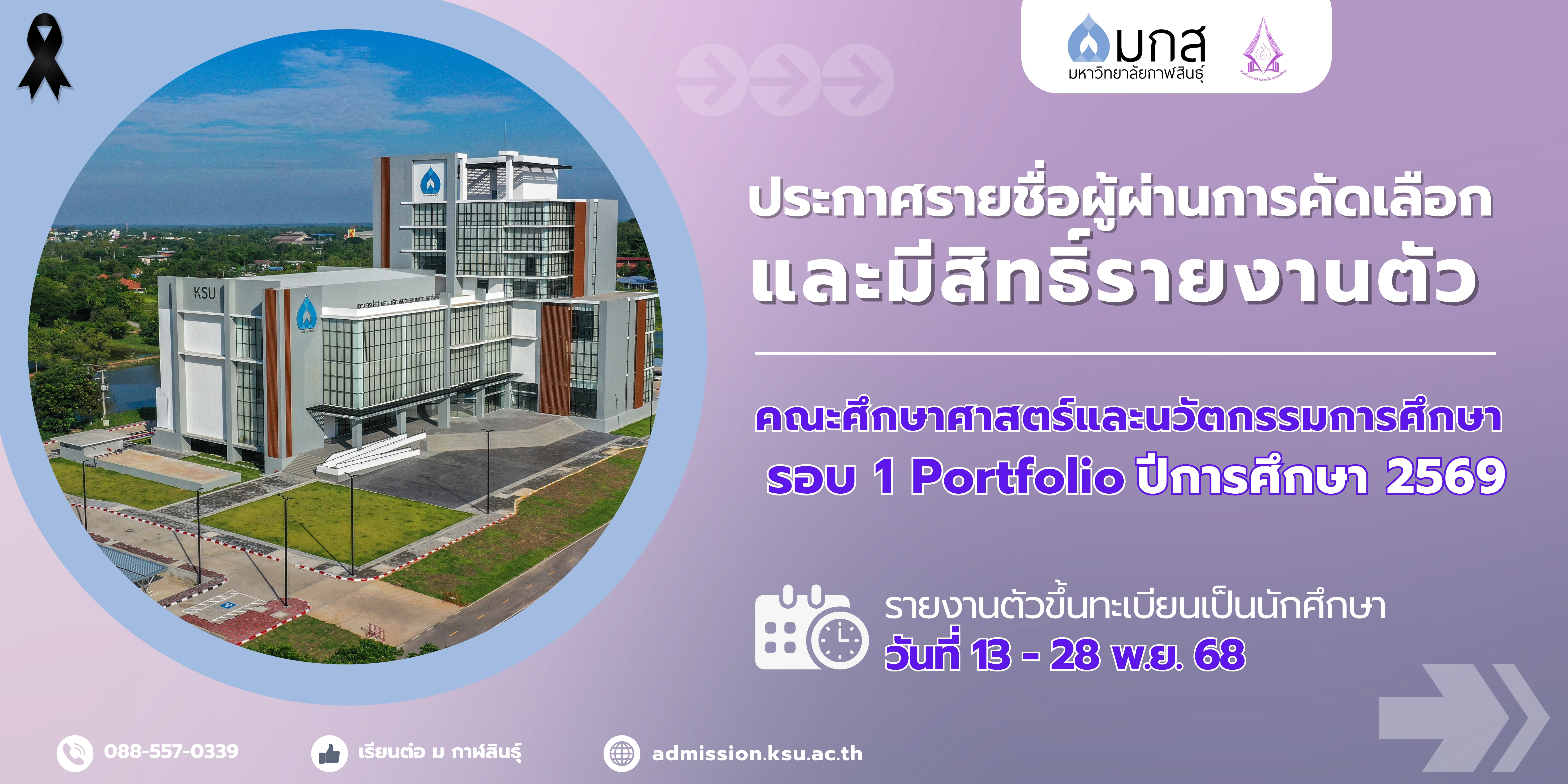 รายงานตัวขึ้นทะเบียนเป็นนักศึกษา ตั้งแต่วันที่ 13 - 28 พฤศจิกายน 2568 ทางออนไลน์ ได้ที่ รายงานตัวขึ้นทะเบียนเป็นนักศึกษา คลิกที่นี่