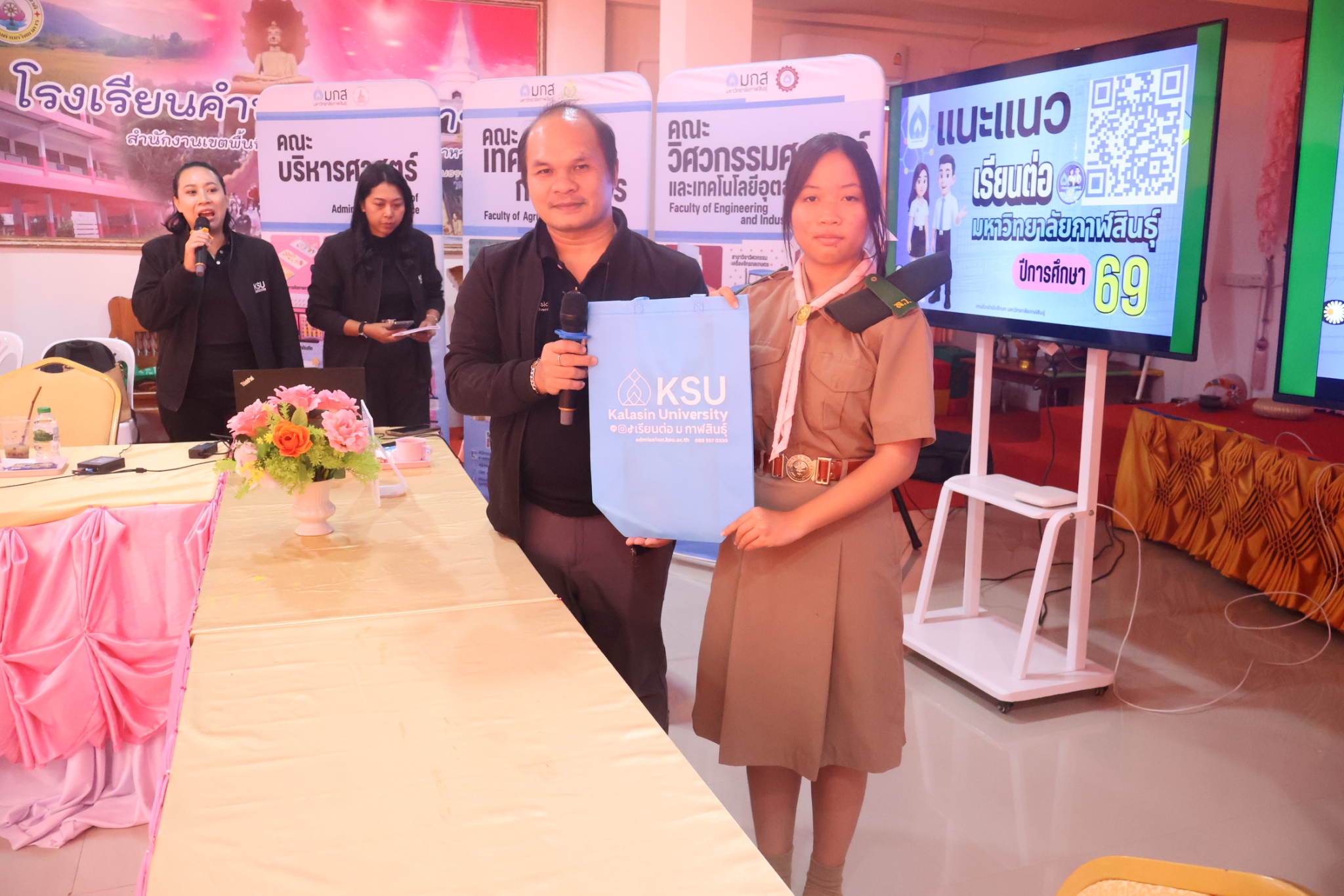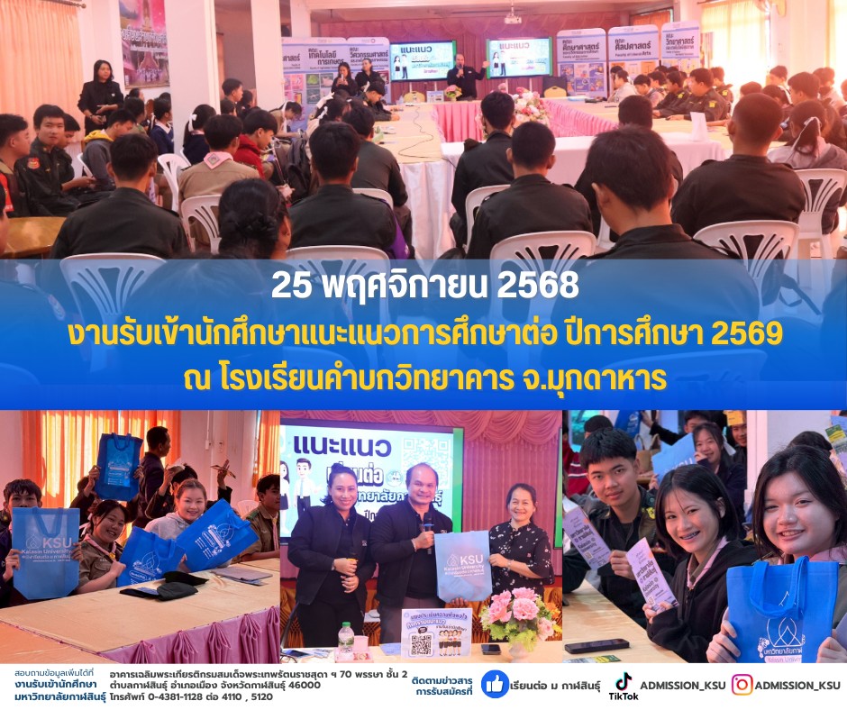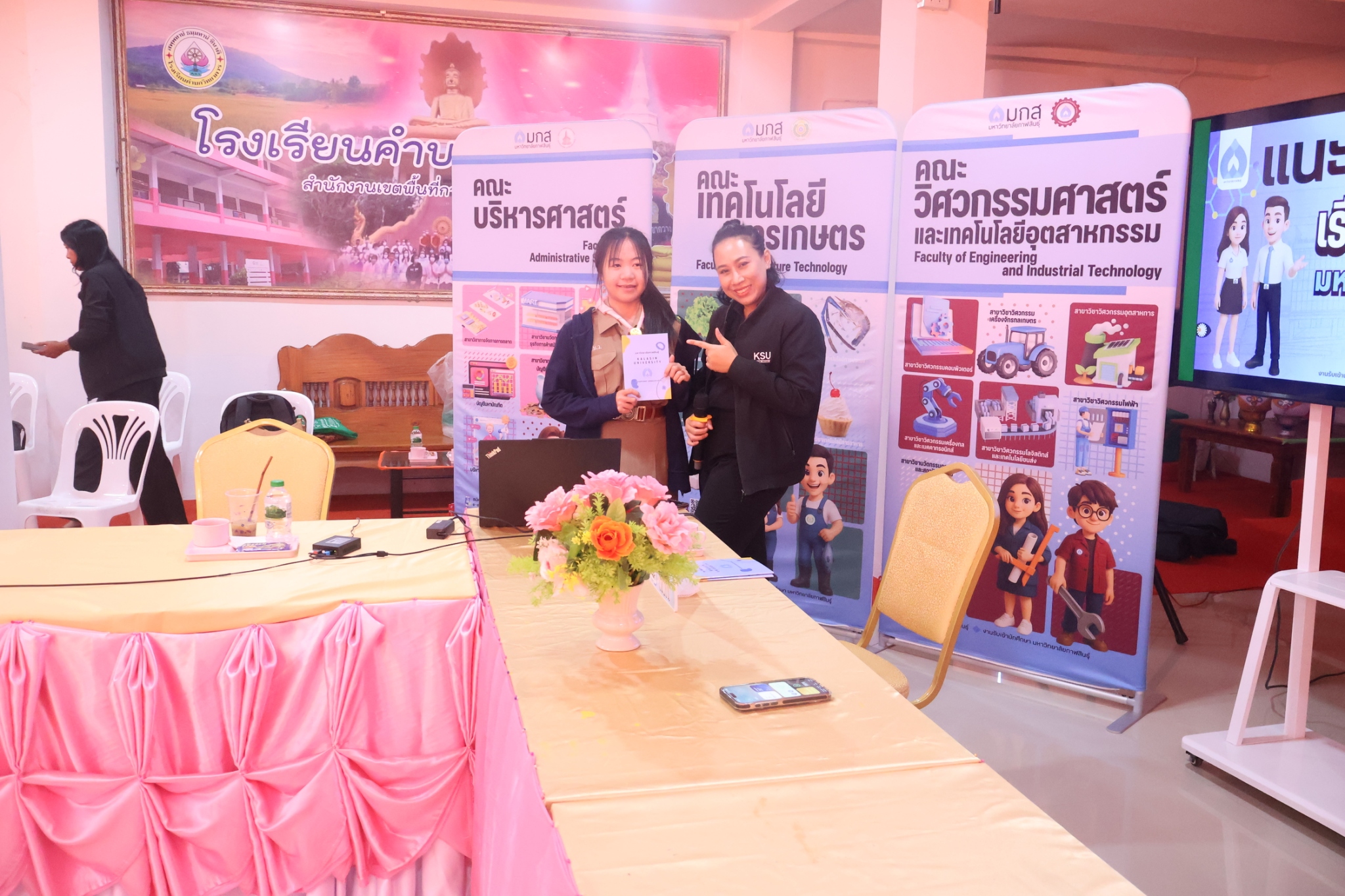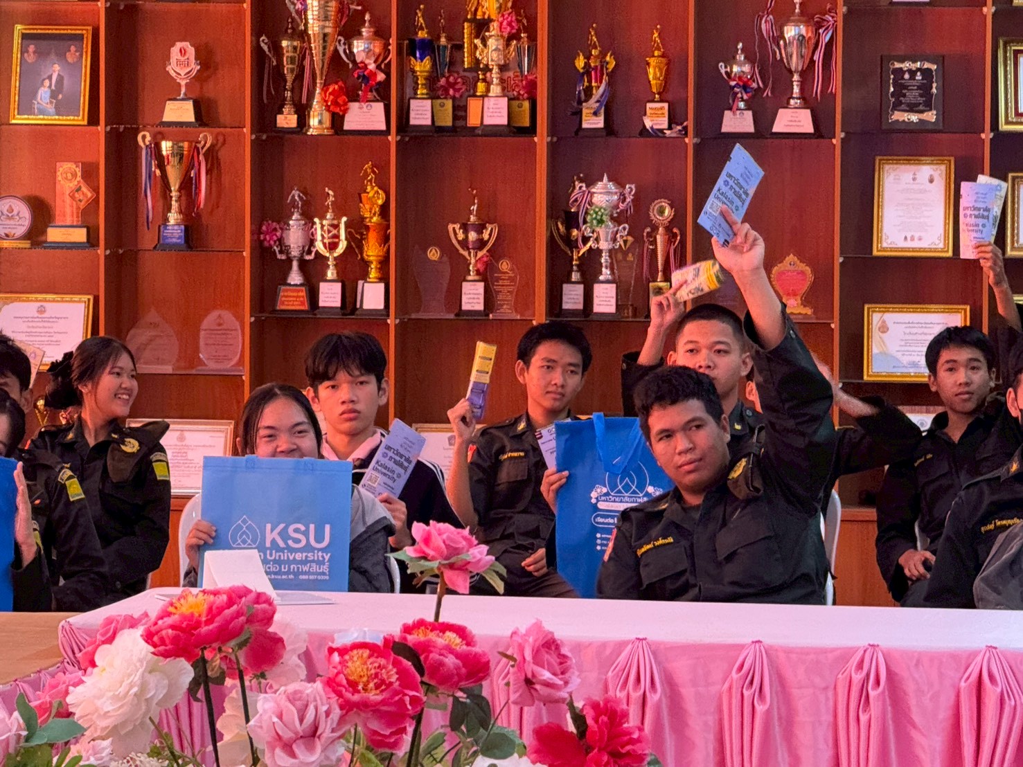 วันที่ 25 พ.ย. 68 งานรับเข้านักศึกษา มกส. ไปแนะแนวน้องๆ ร.ร.คำบกวิทยาคาร จ.มุกดาหาร ได้มอบของที่ระลึกให้นักศึกษาใหม่ KSU11 ด้วย