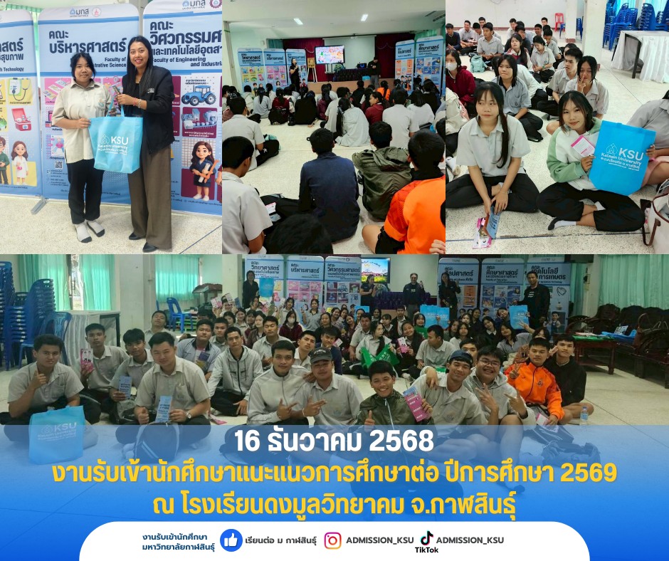 วันที่ 16 ธ.ค. 68 - งานรับเข้านักศึกษา เข้าแนะแนวการศึกษาต่อให้น้องๆ ม.6 โรงเรียนดงมูลวิทยาคม จ.กาฬสินธุ์ พร้อมเซิร์ฟทุนเรียนฟรี 1 ปีการศึกษา 485 ทุน