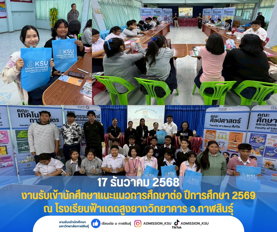 วันที่ 17 ธ.ค. 68 งานรับเข้านักศึกษา ออกประชาสัมพันธ์และแนะแนวการศึกษาให้กับโรงเรียนฟ้าแดดสูงยางวิทยาคาร จ.กาฬสินธุ์