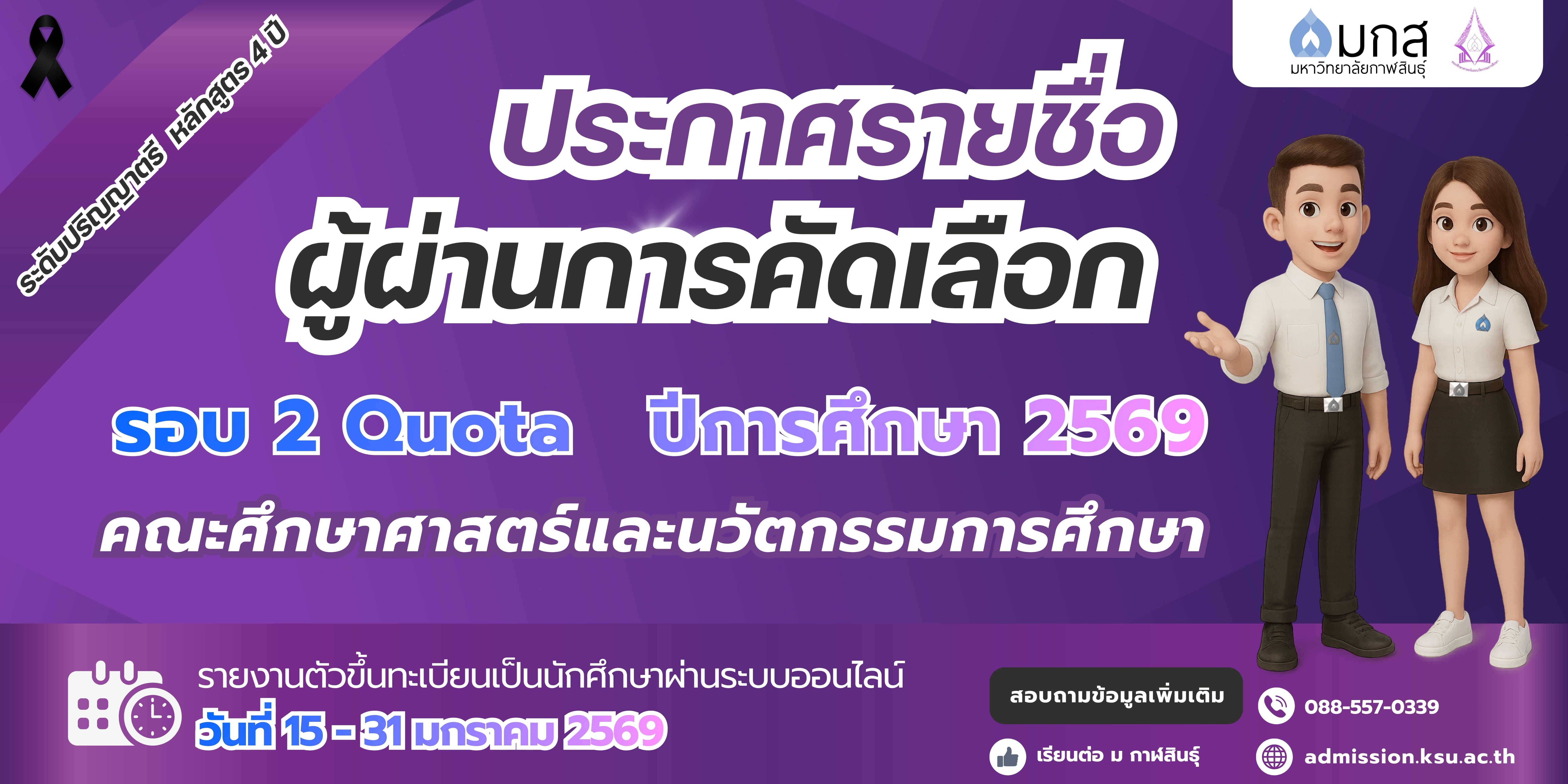 รายงานตัวขึ้นทะเบียนเป็นนักศึกษา ตั้งแต่วันที่ 15 - 31 มกราคม 2569 ทางออนไลน์ ได้ที่ รายงานตัวขึ้นทะเบียนเป็นนักศึกษา คลิกที่นี่