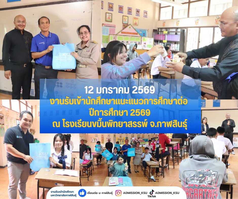 วันที่ 12 มกราคม 69 งานรับเข้านักศึกษา และอาจารย์จากคณะบริหารศาสตร์ พร้อมกับเจ้าหน้าที่คณะเทคโนโลยีการเกษตร เข้าแนะแนวการศึกษาและประชาสัมพันธ์หลักสูตร ณ โรงเรียนขมิ้นพิทยาสรรพ์