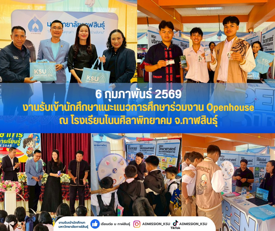 วันที่ 6 ก.พ. 69 งานรับเข้านักศึกษา และคณะบริหารศาสตร์ ได้เข้าร่วมงานเปิดบ้านวิชาการ Open House โรงเรียนโนนศิลาพิทยาคม จ.กาฬสินธุ์