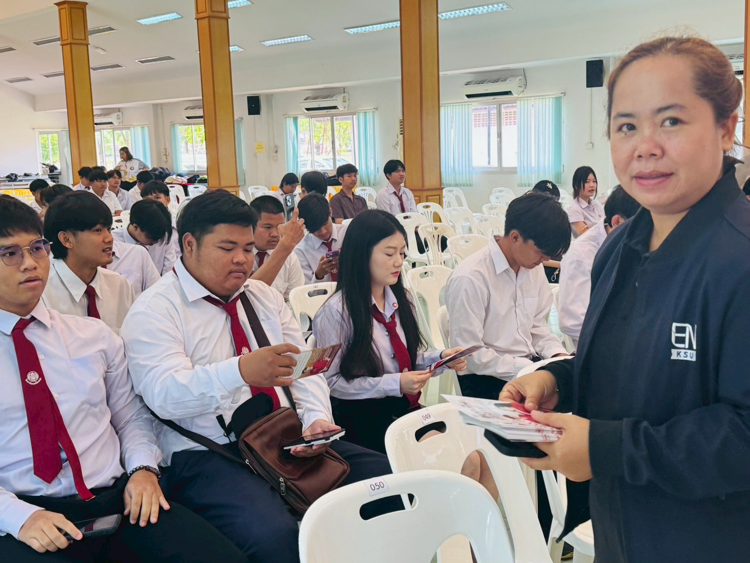 วันที่ 25 กุมภาพันธ์ 2569 งานรับเข้านักศึกษาทีม 1 พร้อมด้วยคณะวิศวกรรมศาสตร์และเทคโนโลยีอุตสาหกรรม คณะเทคโนโลยีการเกษตร และคณะบริหารศาสตร์ และ ลงพื้นที่รับสมัครนักศึกษาใหม่ ปีการศึกษา 1/2569 ณ วิทยาลัยเทคนิคเขาวง อำเภอเขาวง จังหวัดกาฬสินธุ์ พร้อมกันนี้ ทีมงานรับเข้านักศึกษา จากทุกคณะ ได้เปิดพื้นที่อำนวยความสะดวกให้น้องๆ ปวช. ปวส. วิทยาลัยเทคนิคเขาวง ที่ต้องการศึกษาต่อได้สมัครเรียน สมัครเสร็จแล้ววรับของที่ระลึกกันไปเลย แล้วรอรายงานตัวมาเรียนต่อที่ ม.กาฬสินธุ์กันทุกคนเลยนะคะ